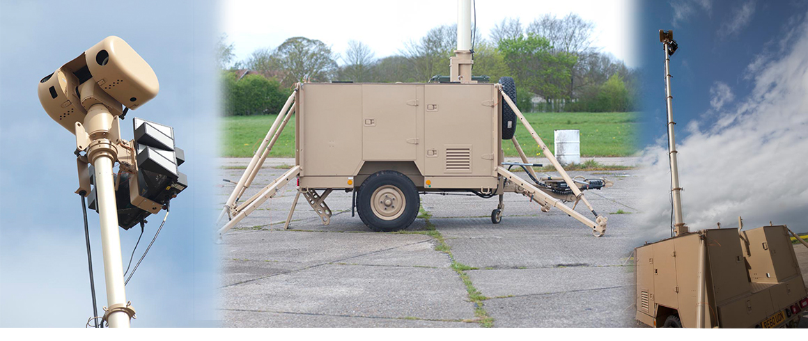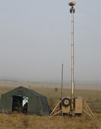 G-WASP provides a rapidly deployable, scaleable, trailer-based Force Protection system that can be towed by a wide range of vehicles. G-WASP can be deployed and made operational in under 30 minutes of arrival at the location requiring a surveillance and protection capability. The optronic sensor head and detection sensor are mounted on a pneumatic mast to allow visual obstructions to be overcome. The system can be operated by a single person and the integrated control and monitoring suite can be situated remotely from the trailer sub-system, fully exposed to the external environment.